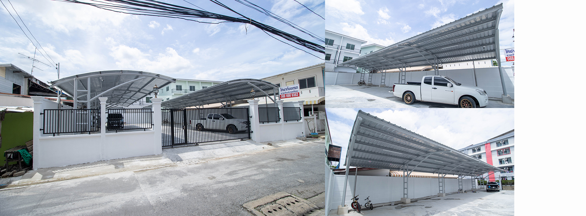 รับทำหลังคาจอดรถ ที่จอดรถให้เช่า หลังคาโรงจอดรถ ไม่มีเสาหน้า เมทัลชีท ราคาถูก 2568